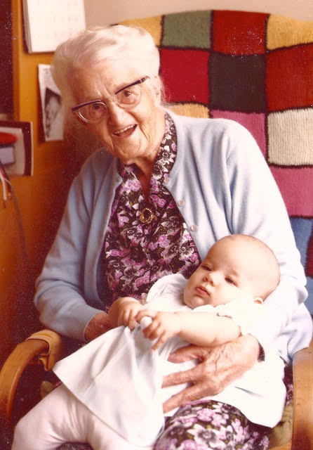 Flo lived to be 104. Her early life was tragic, but she was a strong survivor. I remember her in her baby-blue silk dress, a cake-like hat on her head, curled into her wheelchair, welcoming the many visitors to her 100th birthday. My Mom fluttered around; my Dad, me and my kids, and my siblings and their families, cousins, many friends – all were in attendance to honour the Queen of our family.