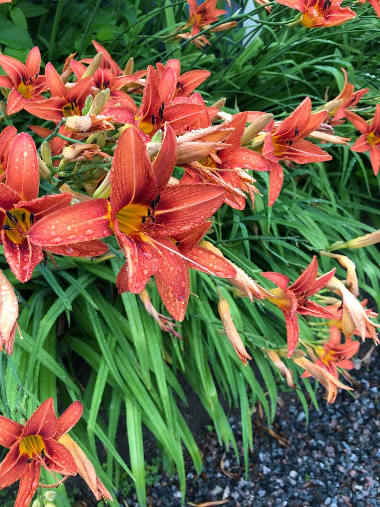 I could write reams about day lilies; about their tenacity. Periodically, I’ve tried to remove them from my various gardens, often in favour of something more exotic. But they always return. The deer love them and munch the buds, sometimes before they can open, and yet they always seem to flower. Once, as I was struggling to dig up a particularly deeply rooted patch, my son begged me to keep them, as though they represented something constant in his changing teenage life.