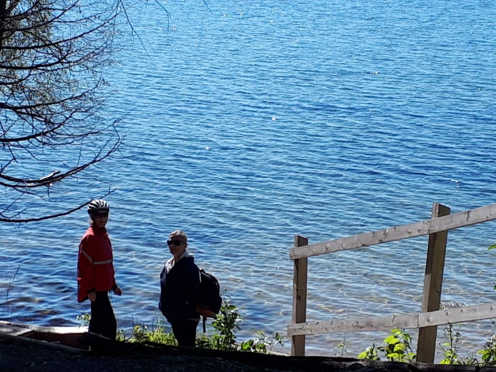 Blue Sea Lake sparkled in the sunshine and the water looked like the Caribbean Sea rather than a northern lake. We saw a hut and a stair to the water’s edge but not knowing if this was the end point, we carried on past Blue Sea Lake, eventually coming to a gravel path that led further north for the intrepid rider bound for Maniwaki. It was there that we decided to re-group and head back to the hut we had spied earlier to take in the beauty of the lake and enjoy a bit of a picnic.