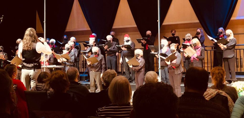 We went to zoom, and although it was very odd singing into a void, especially for the working members who zoomed all day long, we managed it, and recorded and were always cheerfully encouraged on by our director Lee Carter. Finally, last night Dec. 3rd we sang at the Wakefield Community Centre with our masks on, but still, we sang !!