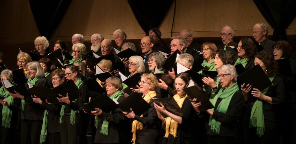 The choir tackles challenging pieces in many different languages, Russian, Japanese, Arabic, Swahili, German, Italian and remains undaunted by the challenges each one presents. We sing jazz, classical, swing, pop, commercials, Gordon Lightfoot, barbershop, you name it, we will learn it.