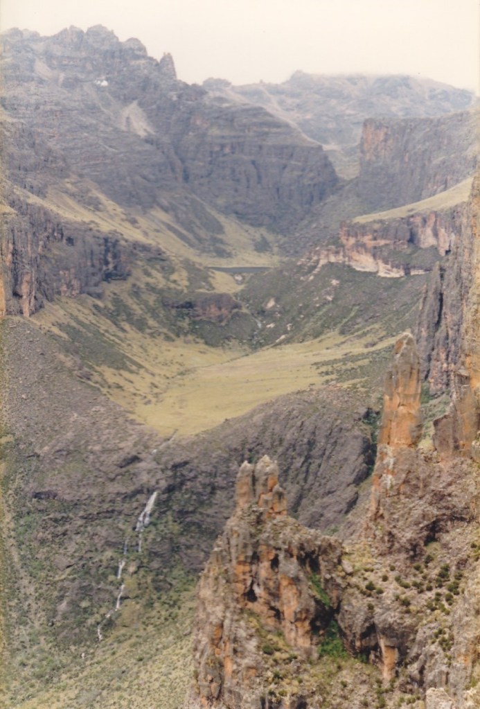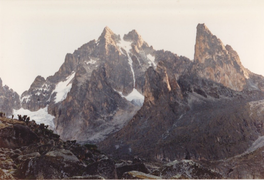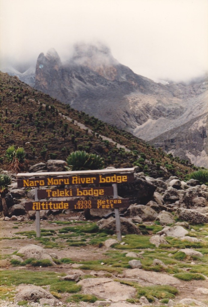 I met Linda on the island of Lamu when she walked up to me and asked if I was missing the snow in December. Without knowing anything about mountain climbing, Linda easily convinced me to join her to climb Mt. Kenya. I borrowed some old camping equipment from my housemate and we caught a matatu bus for Nauru Mauro. We arrived at the River Lodge hotel which was expensive for us so we split a delicious dinner at the swanky restaurant and got permission to pitch our pup tent behind the lodge for free. That night in the tent we were startled when we heard what sounded like dogs fighting. Turns out, they were mating and the male got his penis stuck and they were dragging each other around our tent. Not very mood enhancing but we had a good laugh and it broke the ice.