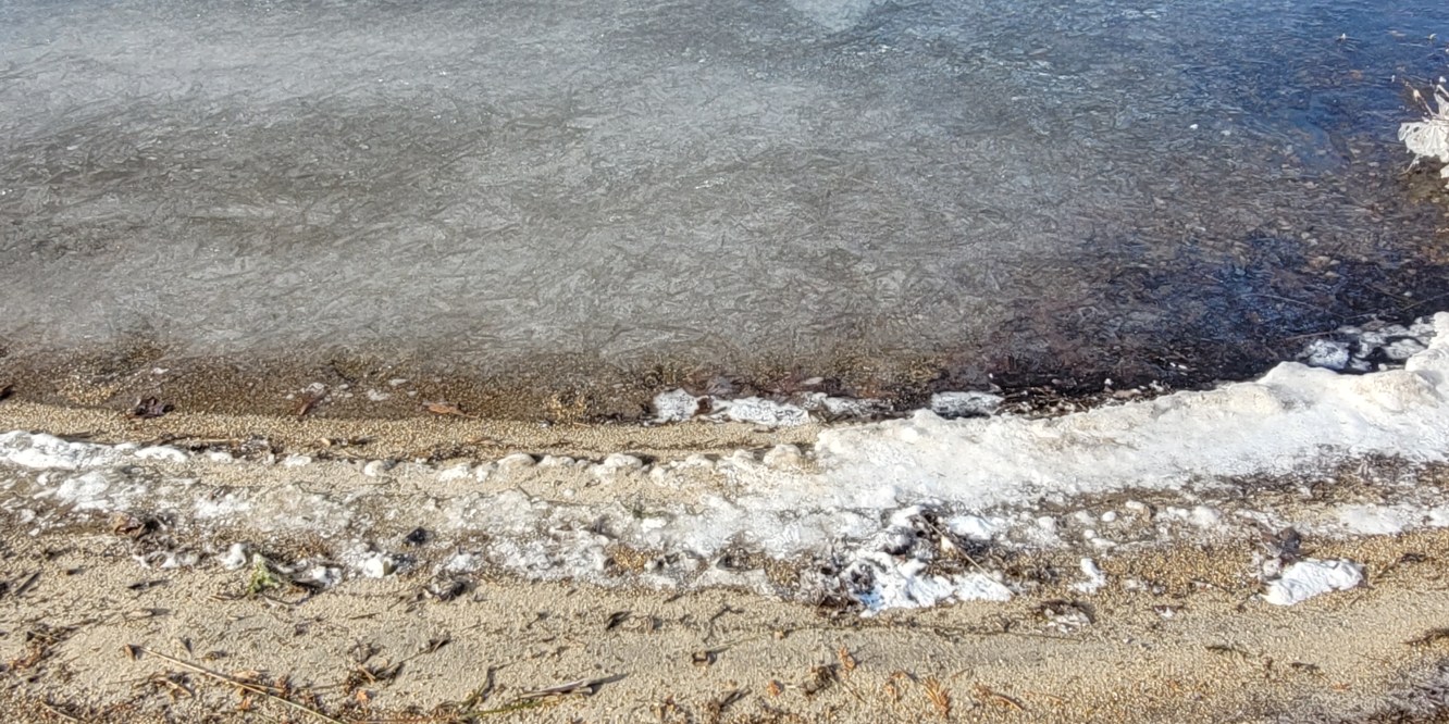 This was an invitation to different movements. Animal tracks started appearing. Snowfall began gathering, then drifting, sometimes exposing the ice again. Then after weeks of hardening, people started populating the ice: skiers, walkers, snowmobiles, fishermen. People walking on water…