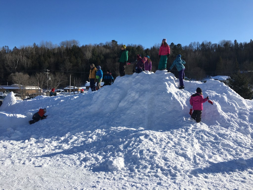 Ms. Winter: In the beginning, no one really knows when, but before the days of the Tenagadinozibi / Gatineau River, the land was covered in ice. There was an ICE Dragon and a FIRE Dragon and they were always fighting. Sometimes they would shoot fire and ice at each other all day! One day they had a BIG FIGHT and the fire and ice met in the middle and crashed together with so much power that it created the Tenagadinozibi and that is why we have the river today. But then, the dragons found themselves on either side of the river and they missed each other and so they built a bridge and fell in love, and that is when the SNOW Dragon was born.