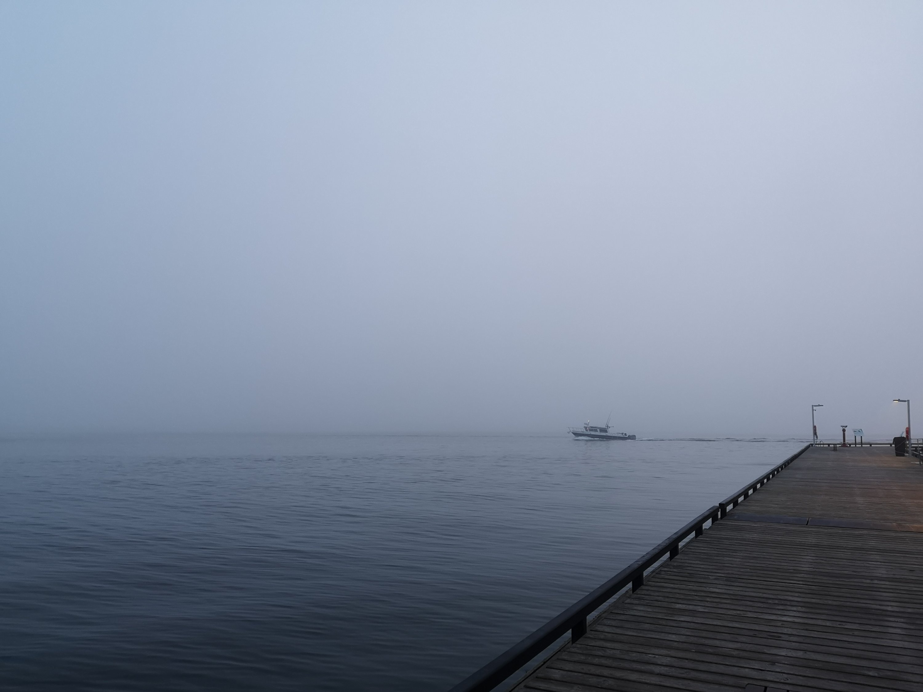 I reach the dock, find the boat and climb on board. I take my seat, sip my hot tea and settle in. I can finally have a good look around. It’s still misty, borderline rain.