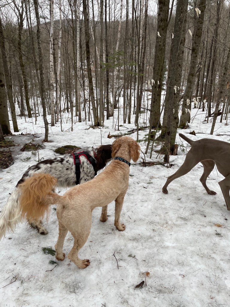 As yet, I don’t have as important a role to play as my Uncle Sid who has a full-time job at Heathrow airport. But I’m working on it. I can find balls long since forgotten in the woods. And one day, last winter, I excelled myself by finding Benoit’s hockey puck that was buried deep in a snowbank. That was one of the highlights of my life. He said I was the best dog in Wakefield. I have a feeling that title could be hotly contested, especially since I’m seldom labelled a “good dog”.