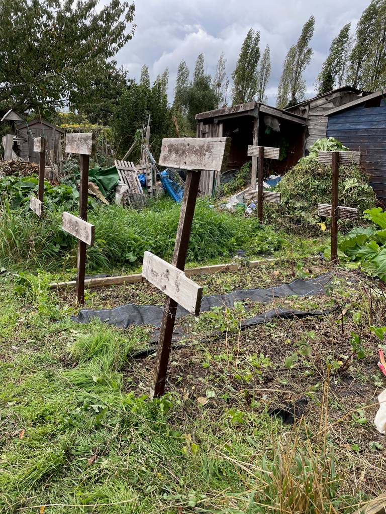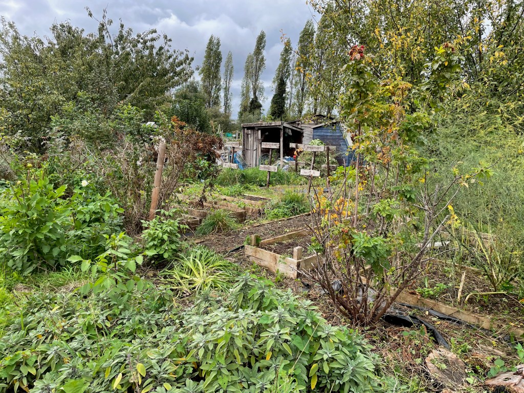 I called the allotment a bomb site and then caught myself. Really, unlike that woman, I have no concept of a bombsite. Stories of World War II destruction swirled around me as a child, as part of the collective consciousness. Stories, too of “digging for victory” and the importance gardens and allotments played in supplementing rations. My grandfather’s allotment supplied potatoes, onions, carrots, cabbages, peas, beans… not just for my mother’s family, but also for other families in the area, who had limited access to any land.