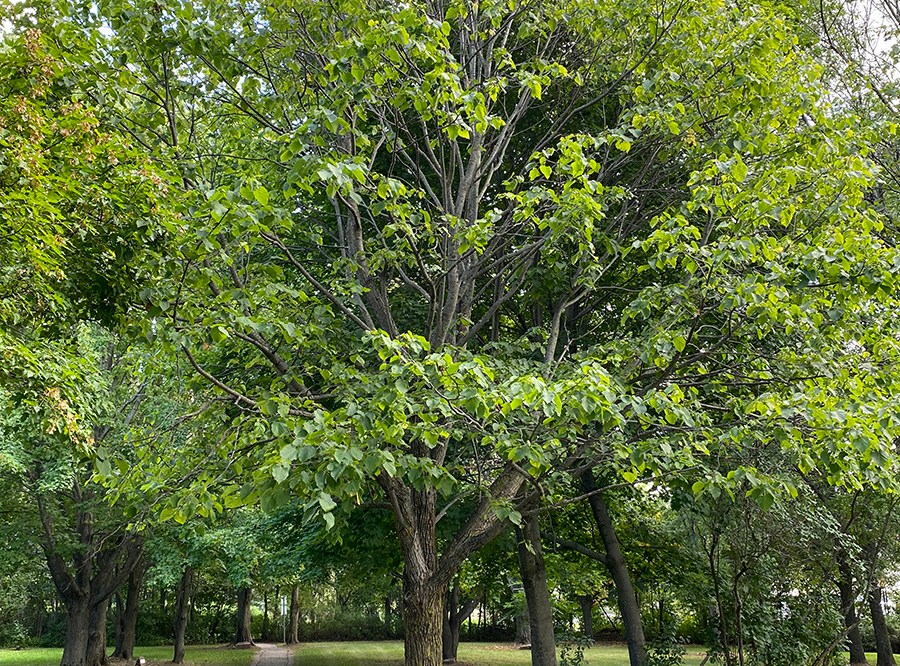 It’s worth noting that basswood flowers are pretty special. Not only are they an important nectar source for native pollinators, but their perfume is intoxicating in both a literal and figurative sense. I’ve walked down a residential block lined with European lindens, a popular street tree closely related to basswood, during peak bloom when the air was fragrant with tilia blossoms. At the time, bees of all stripes were bumbling from one flower cluster to another in what seemed like a drunken fashion. I later learned that the bees were truly buzzed, as tilia flowers are soporific.